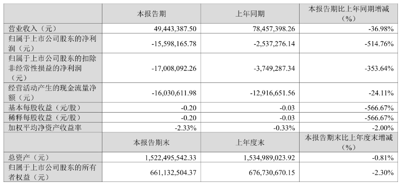中证智能财讯多瑞医药(301075)4月25日披露2025年第一季度报告。公司实现营业总收入4944.34万元,同比下降36.98%;归母净利润亏损1559.82万元,上年同期亏损253.73万元;扣非净利润亏损1700.81万元,上年同期亏损374.93万元;经营活动产生的现金流量净额为-1603.06万元,上年同期为-1291.67万元;报告期内,多瑞医药基本每股收益为-0.2元,加权平均净资产收益率为-2.33%。