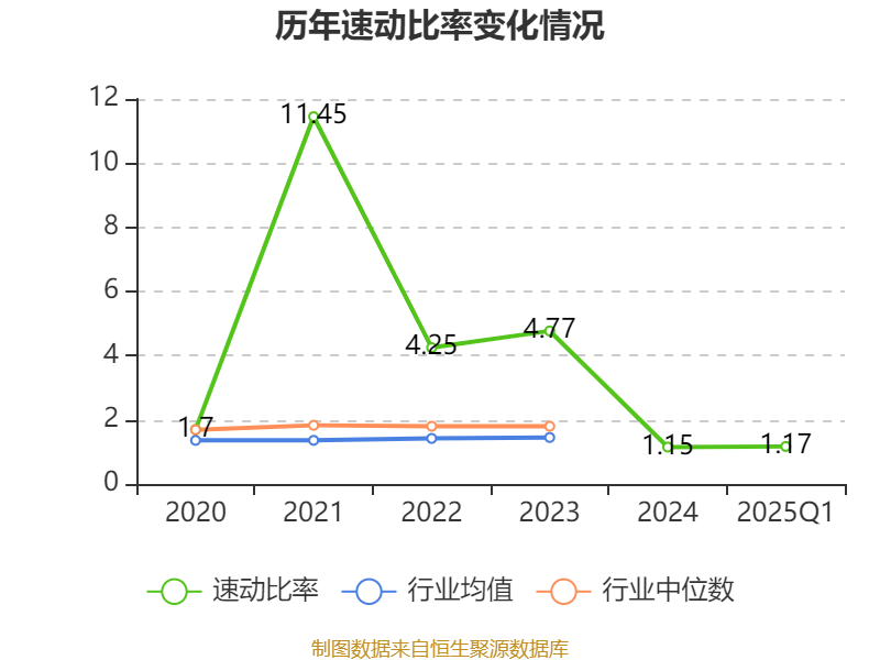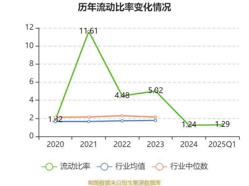 2025年第一季度,公司流动比率为1.29,速动比率为1.17。