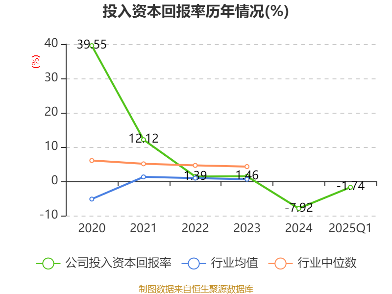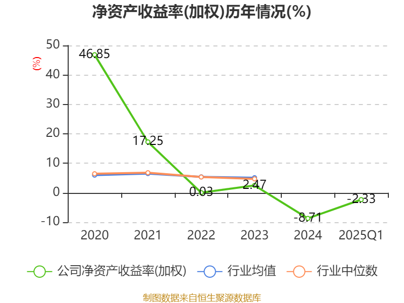 盈利能力方面, 2025年一季度公司加权平均净资产收益率为-2.33%,同比下降2个百分点。公司2025年第一季度投入资本回报率为-1.74%,较上年同期下降1.42个百分点。