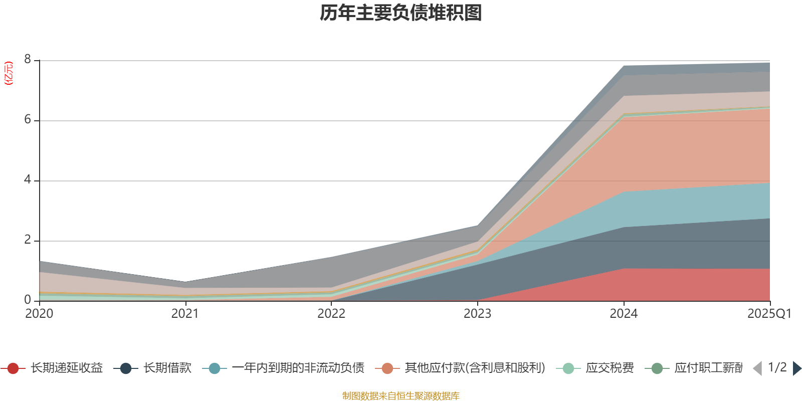 负债重大变化方面,截至2025年一季度末,公司长期借款较上年末增加21.82%,占公司总资产比重上升2.04个百分点;应付票据及应付账款较上年末减少14.91%,占公司总资产比重下降0.54个百分点;应付职工薪酬较上年末减少52.49%,占公司总资产比重下降0.27个百分点;其他流动负债较上年末减少96.92%,占公司总资产比重下降0.21个百分点。