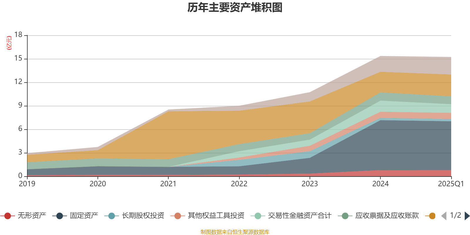 资产重大变化方面,截至2025年一季度末,公司交易性金融资产合计较上年末减少21.66%,占公司总资产比重下降1.94个百分点;货币资金较上年末增加6.12%,占公司总资产比重上升1.19个百分点;存货较上年末增加28.91%,占公司总资产比重上升0.9个百分点;固定资产较上年末减少2.21%,占公司总资产比重下降0.58个百分点。